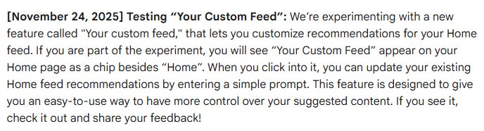 Now, the fact that the update says "prompt" could mean YouTube is using AI to customize your feed. If that's the case, then don't expect a single prompt to create the perfect feed. You'll have to play around with it until it's at least 90% what you want.