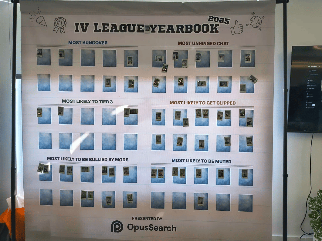 OpusClip had a wall of the IV League Yearbook, where an OpusClip team member would take a polaroid picture of you and you'd choose where you'll be in the year book.