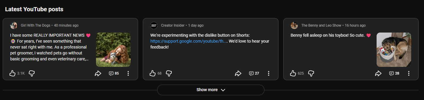 YouTube has been trying to be a little bit more like other social media as they encourage you to use their Community Post, while giving more surface area.